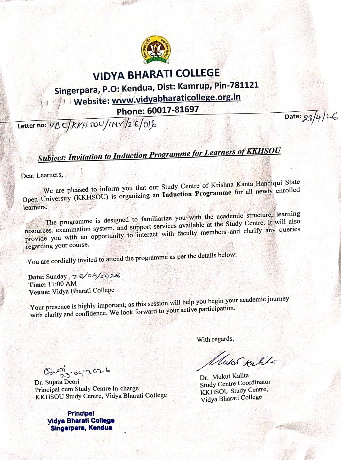 Vidya Bharati College Alumni Conference. The occasion was graced by the Local MLA and Former Principal, of the college, and Retired Associate Professor of Pub Kamrup College.