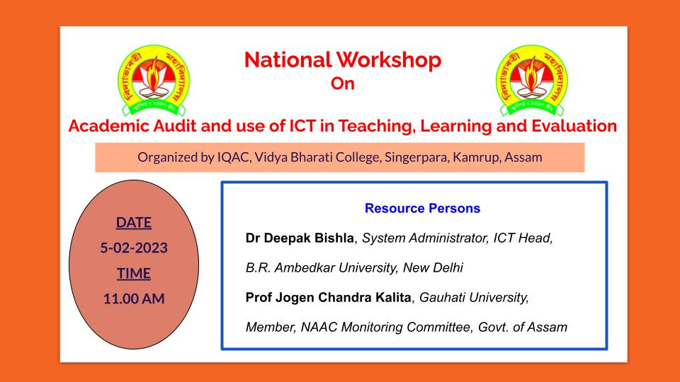 National Workshop on 'Academic Audit and Use of ICT in Teaching, Learning and Evaluation' on 5th February, 2023 View 2023-02-02